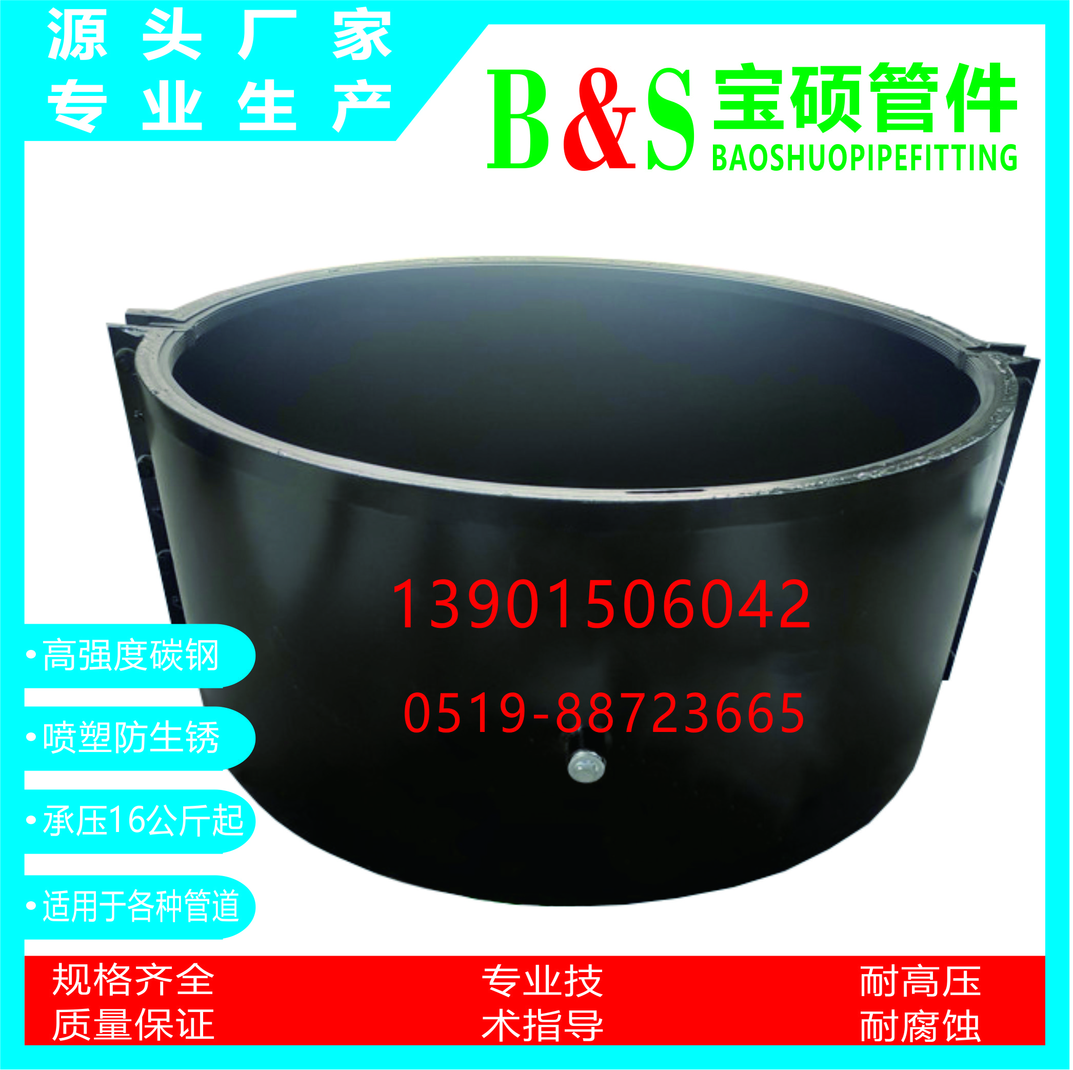 常州市宝硕管件有限公司【常州市宝硕宏图管道配件有限公司】是生产各种管道哈夫节,三通哈夫节,弯头哈夫节,异径等管件哈夫节;高压哈夫节,耐油哈夫节,耐高温哈夫节,耐腐蚀哈夫节,碳钢哈夫节,304.316.316L不锈钢哈夫节。马鞍三通管卡,四通管卡;哈夫三通管卡,四通管卡;承插钢塑管件;柔性快速接口.........